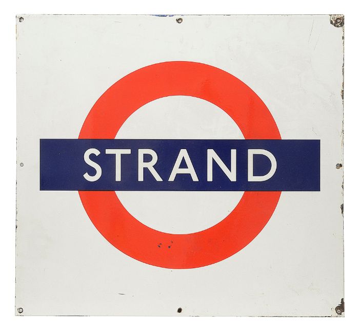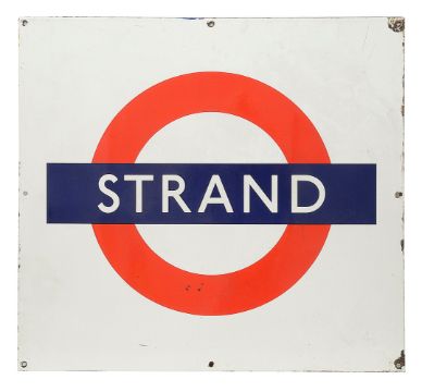 A London Underground enamel platform sign for Strand station,c. 1960s, 71cm x 65cm