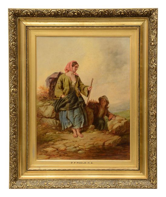 Manner of Paul Falconer Poole R.A. (British 1807-1879)'Two young girls collecting wood', unsigned, oil on canvasFramed size 63cm x 51cm, within mount 44cm x 33cm