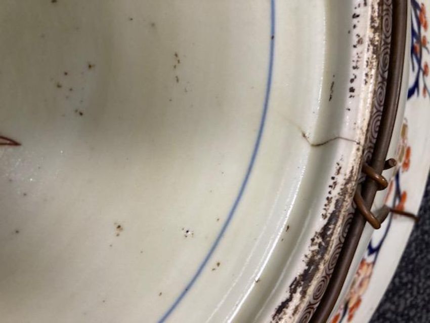 Condition: Occasional light rubbing to gilt. Short hairline from edge of centre running partially up side. Hanging wire attached.