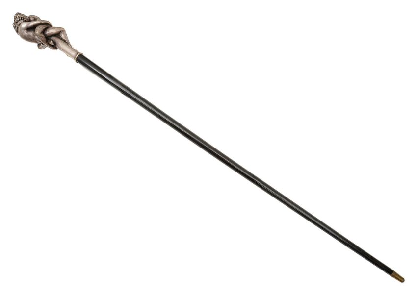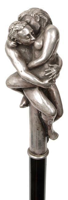A modern Italian silver mounted erotic walking stickItalian marksthe filled silver handle naturalistically modelled in the form of a copulating couple, ebonised shaft