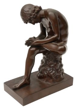 F. Barbedienne. After the Antique a French patinated bronze figure of the Spinario c.1900signed F. Barbedienne Fondeur