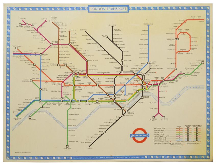 A London Underground cardboard wall display map, c. 1962, designed by Harold F. Hutchinson, by Waterlow & Sons, with hanging card mount to reverse, 38cm x 50cm