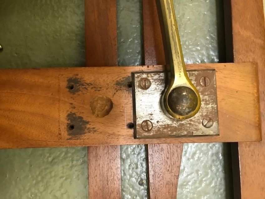 A George IV mahogany music standcirca 1820the ratchet adjustable cross form stand on a rotating brass arm, the turned tapered column on a quatreform base with brass bun feet and concealed castors, Height will not adjust Height when flat 81cm, width 41cm, depth 33cmCondition: Dent to the edge of the stand, see image. It will not adjust up and down. The bracket support has been moved. Some small splits to the veneers on the base edges.This lot must  be collected from the Auction venue by 1pm Friday 10th February.  Please arrange transport before this deadline.   Uncollected property will be transported to our offsite storage facility and collection can be arranged by appointment only.  Additional fees of £20 apply for the transport
