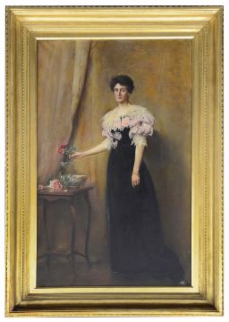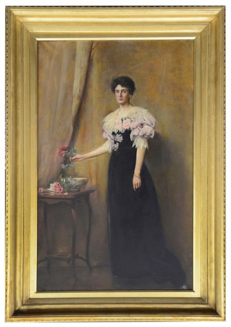Length portrait of a young woman, oil on canvas, monogrammed and dated lower left 'AP 1897', framedwithin mount size 110 x 66cm, with frame 134 x 90cm