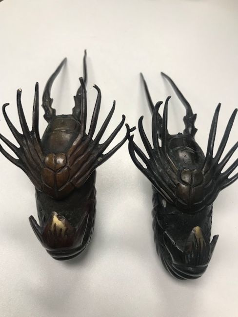 Condition: Good condition overall. There is a slight colour difference between them and there is wear to the underside of their tails. The browner coloured example has longer tentacles.