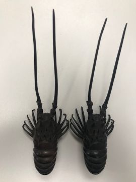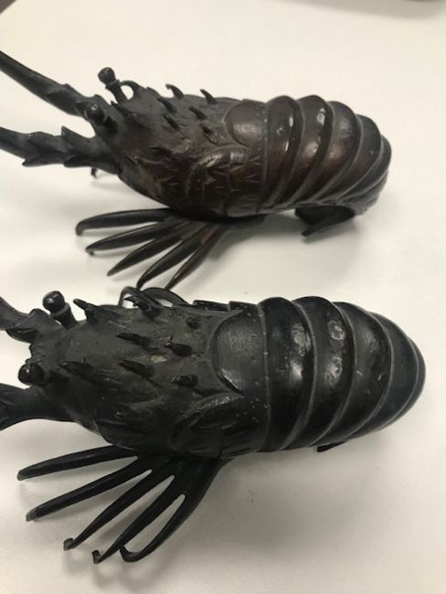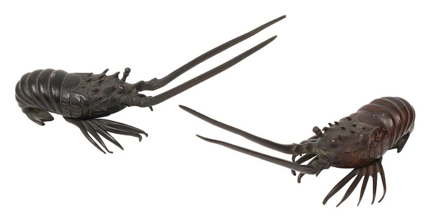 Two Japanese Meiji period patinated bronze okimono of crayfish unsigned, (2)