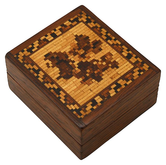 19th century Tunbridgeware rose wood stamp boxthe lid with micromosaic floral spray4 x 3.5cm.