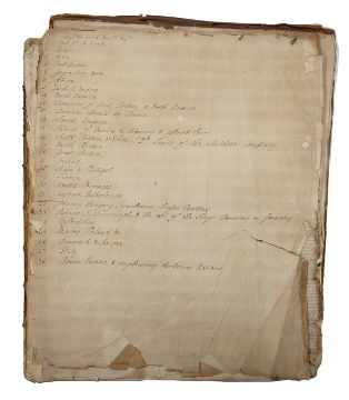 Condition: Lacking top board and spine. End paper is lose and annotated in pen listing 28 map. The endpaper is loss with tears and chips. No title page. Occasional marginal chips throughout water / damp marks to margins from The South Part of Great Britain, called England and Wales, 1710 onwards A New Map of Denmark and Sweden, small hole right hand side of vignette of Laplander removing his Family Dodlsey & Millan.,The Victorian or Dionysion Period or Great Paschal, 1745, lose with a central tear, edges chipped, margins soiled. Rear board covered in blind tooled goatskin is present but in poor condition.