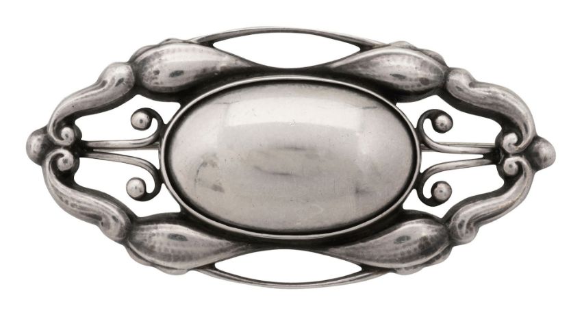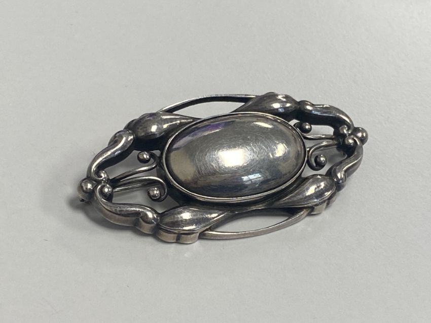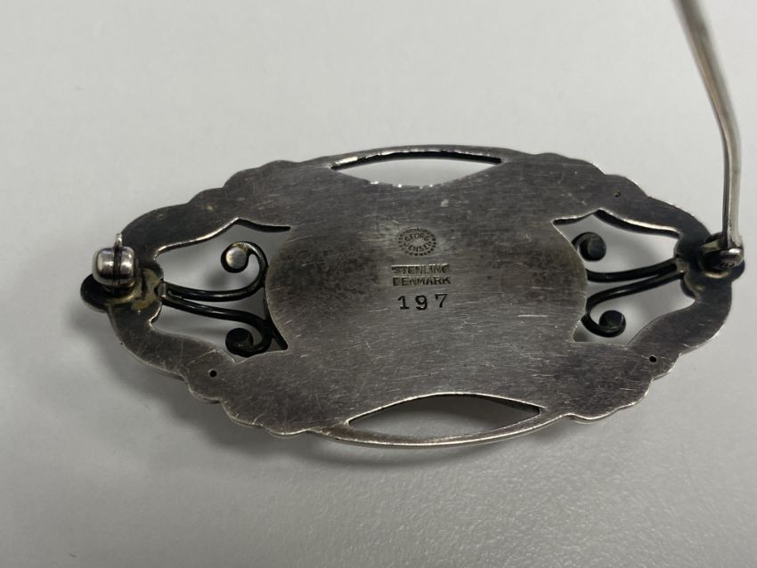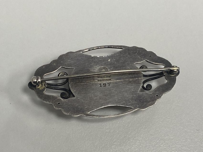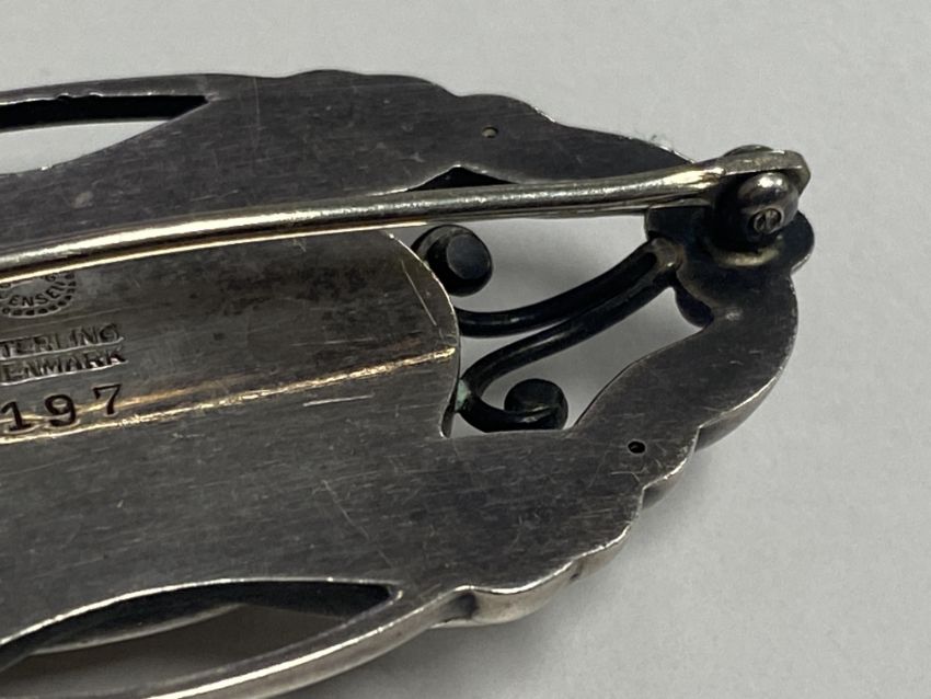 A Georg Jensen silver brooch designed by Gundorph Albertus;mid-century with 'Sterling Denmark' stamp and design stamp '197'