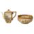 Condition: Chip to spout of teapot, otherwise gilding bright. Second crazing with staining to underside of foot.