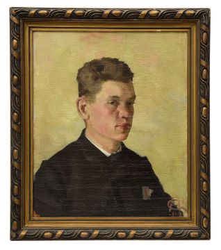 Condition: The item has not been examined out of the frame. There is general surface craqueler. There is evidence of retouching to areas of the coat, under the chin of the sitter and parts of the neck, tip of the nose cheek and below the eyebrows. Label to reverse (translated to English) 'Counsellor Theodore Alexejew, aged 18 or 19', oil, monogrammed lower right corner, dated '84, bearing label verso with printed inscription in Finnish 'Council of State Theodor Alexejew Aged 18 or 19, son of F. Alexejew and Valborg Wahlman, 1870 married Colliander, Theodor was called Fedi in the 1920s - adopted the name Junge which was his wife's maiden name'