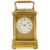 A late 19th century French giant sized gilt brass gorge cased repeater carriage clock by Drocourt white enamel 3.5" diameter dial with black Roman numerals, minute markers and outer Arabic minutes, foliate engraved gilt mask, 8 day movement with passing strike on a coiled gong, backplate stamped with trademark logo and numbered 10965 four glass gorge case with inspection top and carrying handle, numbered 10965, winding key also numbered