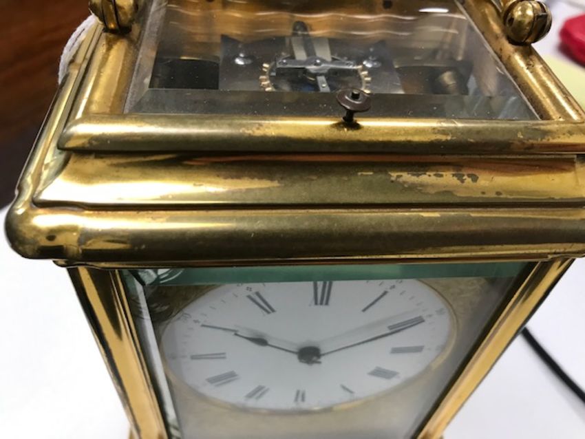 Condition: Winds and strikes but does not run, however no guarantee can be offered as to the full working order. Repeater functions. Some rubbing to case and rubbing to lacquering. Chip to glass on the inside of front top left hand corner.