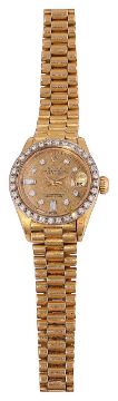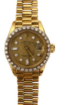 A lady's 18K yellow gold and diamond Rolex Oyster Perpetual date just