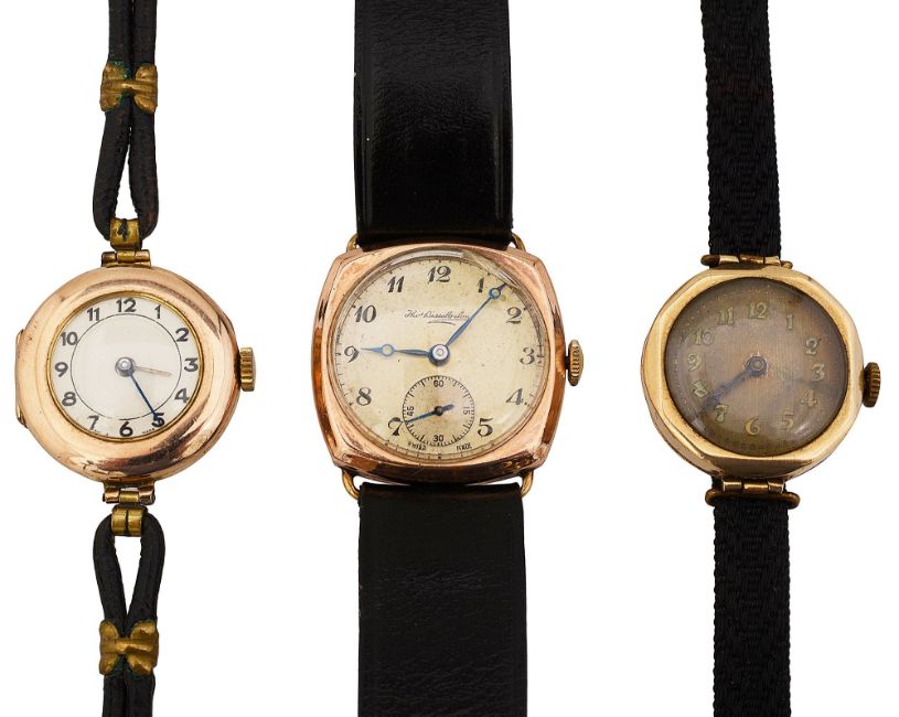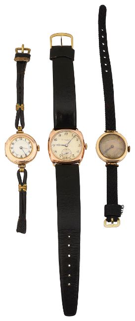 Three 9ct gold wrist watches