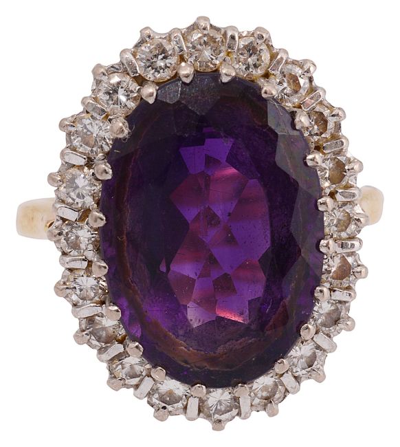 An amethyst and diamond-set cluster ring