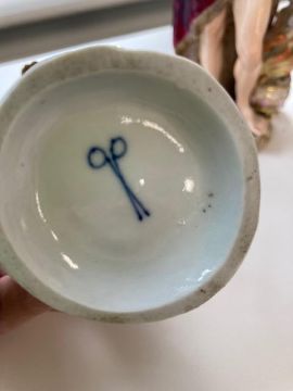 Condition:Meissen monkey band figure has lost its left foot. right arm has been repaired. firing fault on rear left heel of other monkey. Meissen figure of Winter is missing right arm has been repair and missing forearm. the other two without damage but with rubbing to gilt