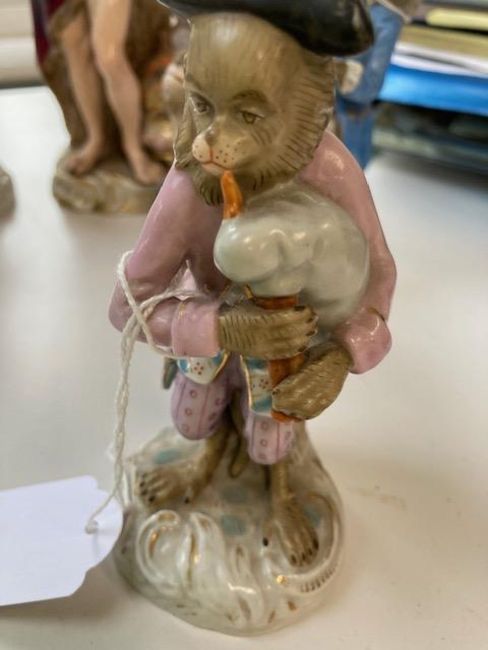 Two late 19th century Meissen figures and two other monkey band figures