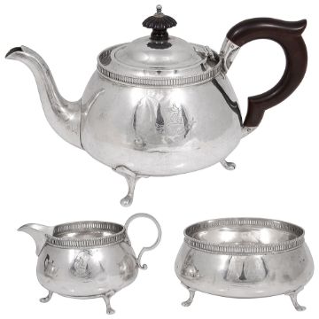 A George V silver three piece bachelors tea service