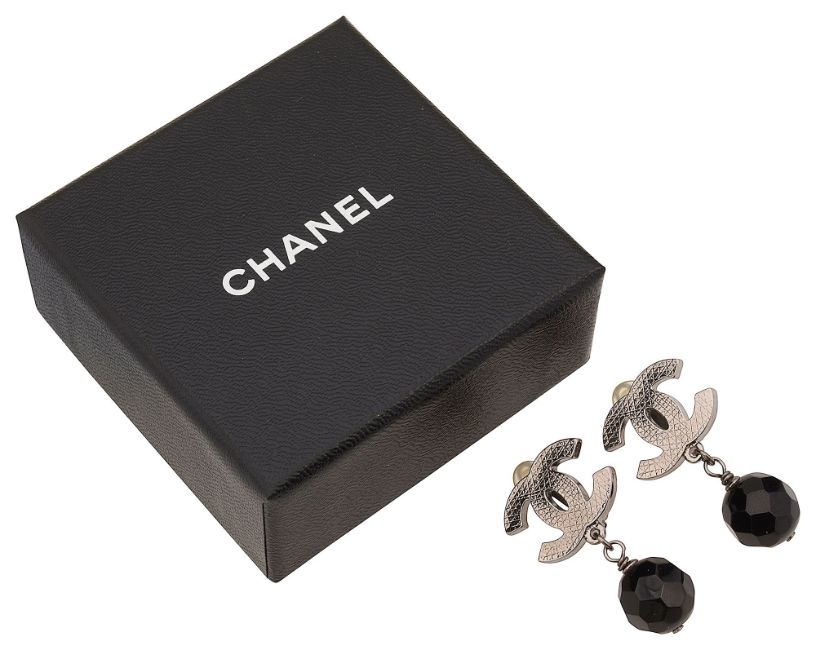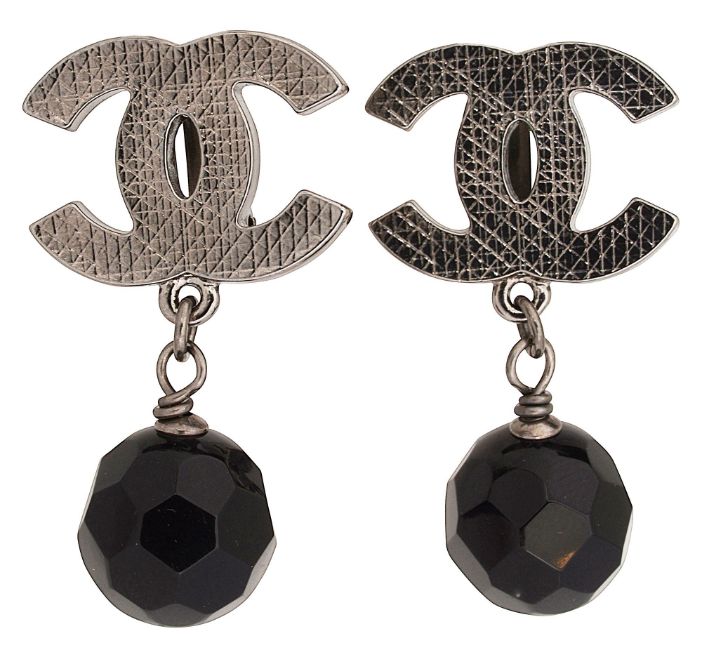 textured addorsed 'CC' suspending faceted black beads, stamped to reverse 'Chanel 10 V Made in France' (2)