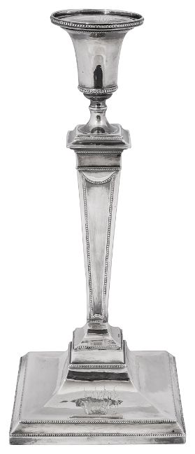 A George III silver Neoclassical Adam style candlestick