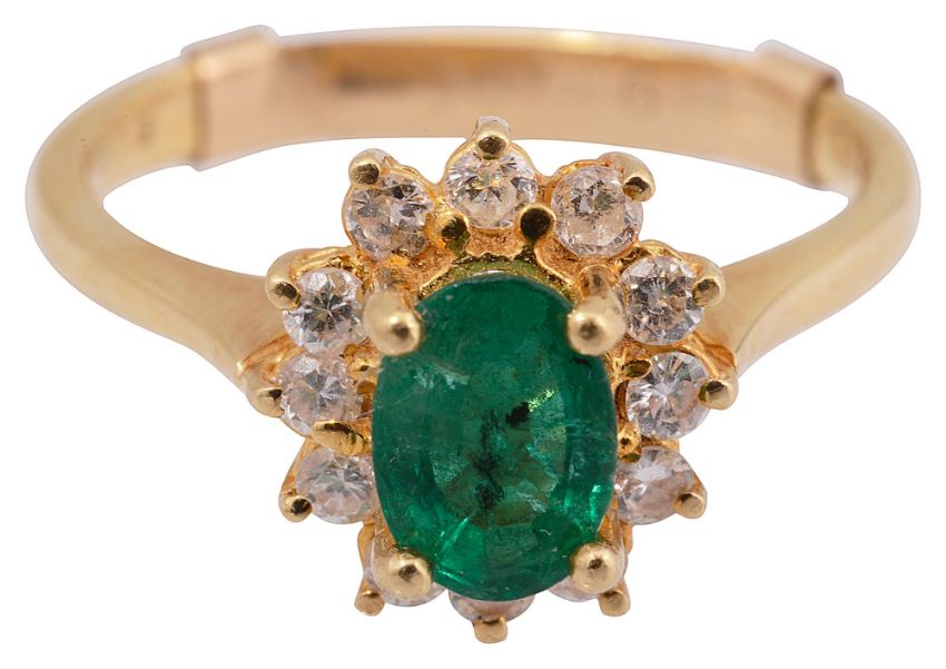 An emerald and diamond-set cluster ring