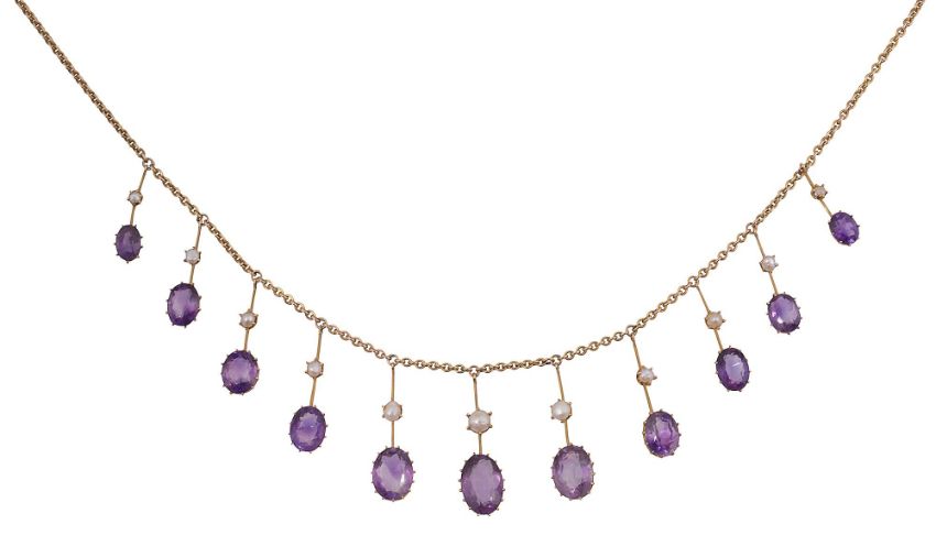 An Edwardian amethyst and seed pearl fringe necklace