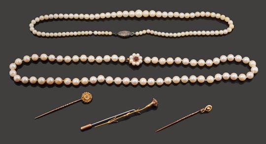Victorian and later costume jewellery to include stick pins, jet and cultured pearls