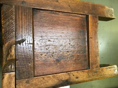 A small walnut box seat settle, Continentalearly 19th centuryprobably for a child, the curved panel back with one open arm above a hinged seat, one side with inset panel, the other side with an applied panelheight 75cm, width 89cm, depth 34cmCondition:Old losses to the feet tips and to the timber section to the right of the hinged seat. Evidence of old wormholes to the underside. The interior now has a chip board baseboard on top of the original baseboard. Left strip visible in image. Perhaps built to fit a specific space as there is no evidence of a second arm.FURNITURE & LARGE ITEMS Must  be collected from the Auction venue by 1pm Friday 28th.  Please arrange transport before this deadline.   Uncollected property will be transported to our offsite storage facility and collection can be arranged by appoiment only.  Additional fees may apply
