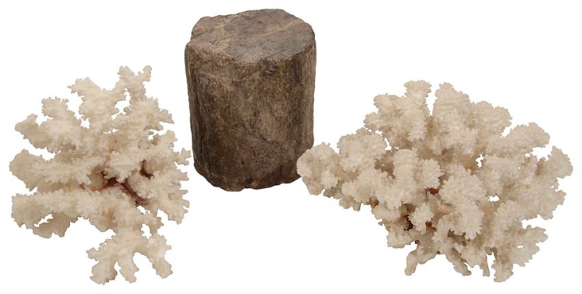 Natural History: A section of fossil tree trunk and two coral specimensfirst height 14cm., diameter 11.5cm.Condition: