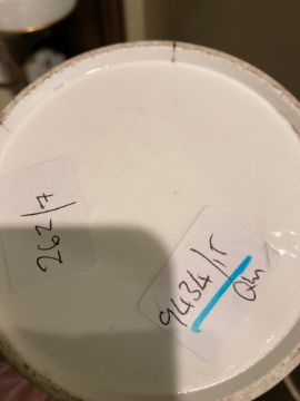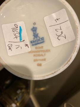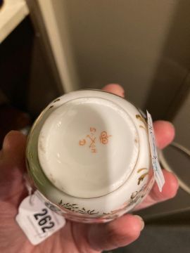 Condition:One cover has been repaired on one of the pot pourri vases. Mug has rubbing to gilt, inner gilt border has run hairline to handle.