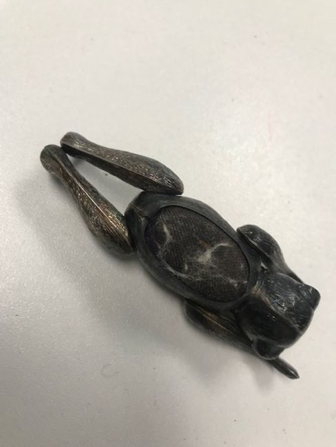 Condition: Good condtion. Tarnished, slight knock to haunch of one rear leg. Velvet cushion pad worn.