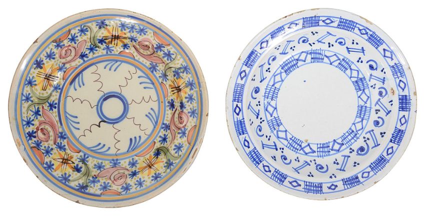 Two 19th century French faience tin glazed earthenware chargers