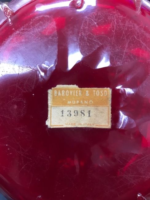 of lobed urn form and with aventurine glass trailing, underside bearing label, 'Borovier & Toso Murano 13981 Made in Italy'