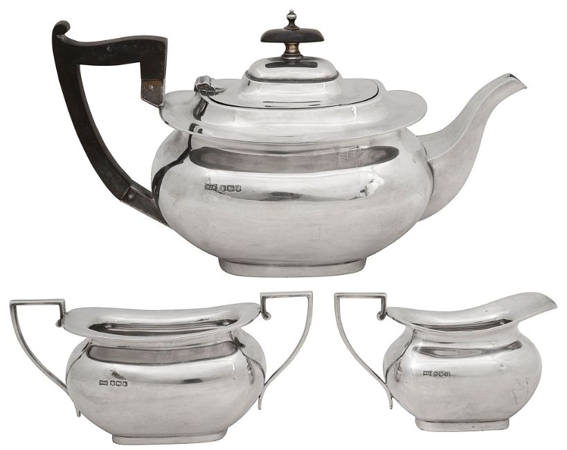 A George V silver three piece tea set