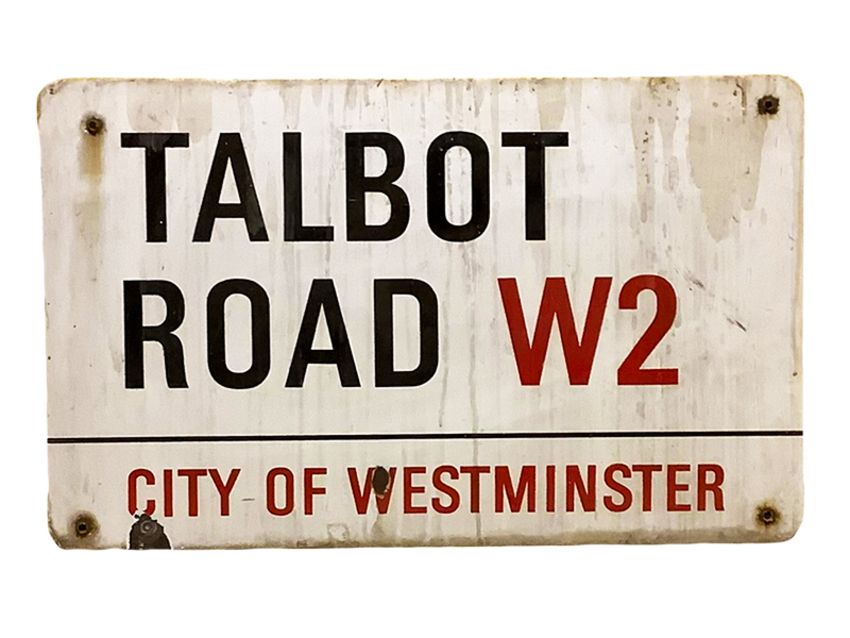 An enamelled steel street sign for Talbot Road W2, City of Westminster