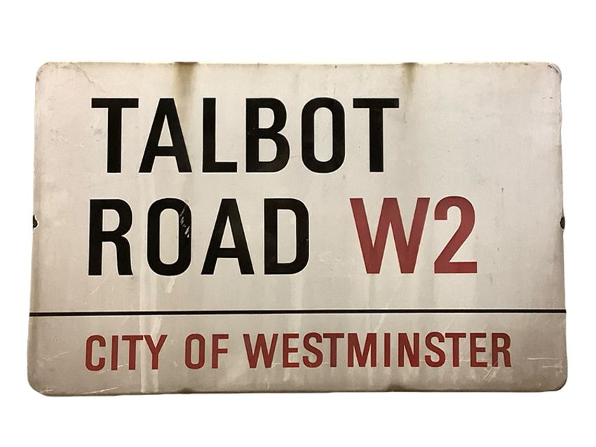 An enamelled steel street sign for Talbot Road W2, City of Westminster