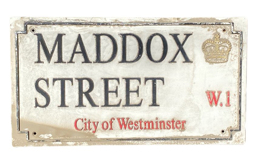 with raised black painted border, black and red painted relief lettering and gilt painted relief crown to top right, with four screw holes, sold together with a signed Certificate of Authenticity from Westminster City Council