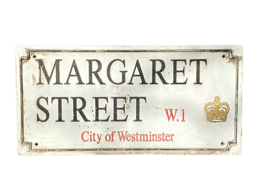 with raised black painted border, black and red painted relief lettering and gilt painted relief crown to bottom right, with four screw holes, sold together with a signed Certificate of Authenticity from Westminster City Council