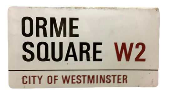 An enamelled steel street sign for Orme Street W2, City of Westminster