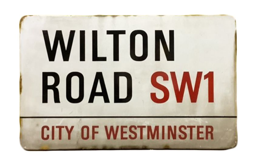 An enamelled steel street sign for Wilton Road SW1, City of Westminster