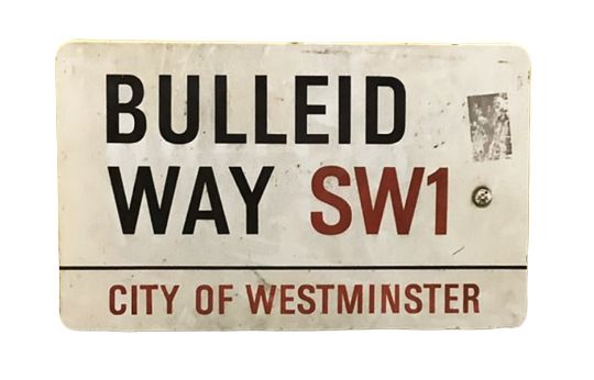 An enamelled steel street sign for Bulleid Way SW1, City of Westminster