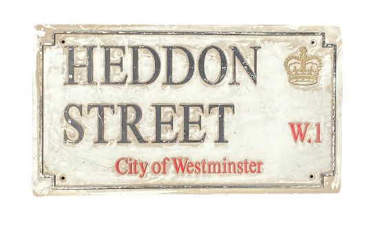 A cast aluminium street sign for Heddon Street W1,