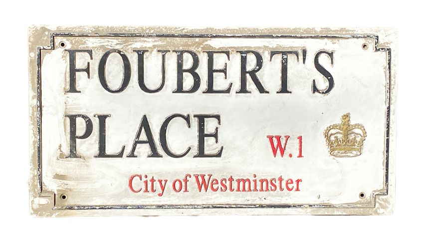 with raised black painted border, black and red painted relief lettering and gilt painted relief crown to top right, with four screw holes, sold together with a signed Certificate of Authenticity from Westminster City Council