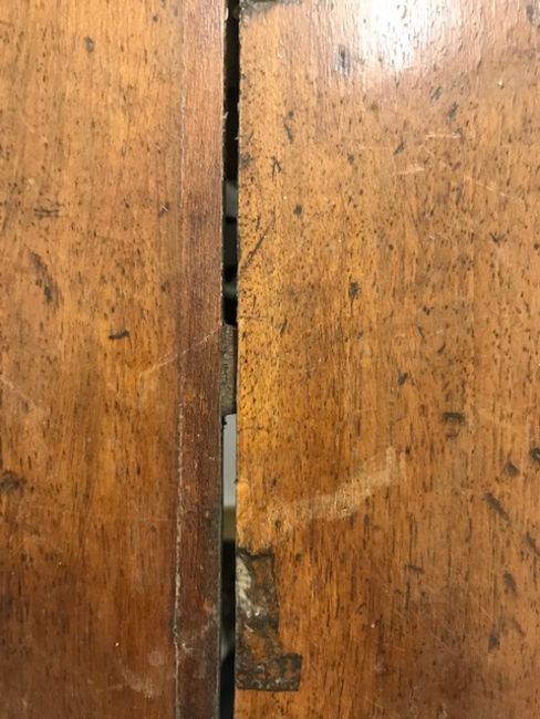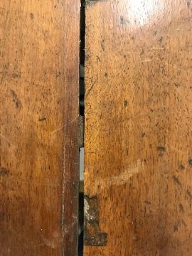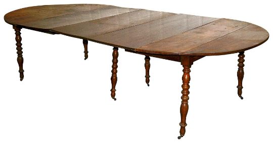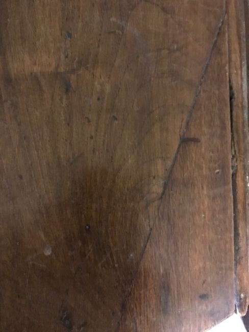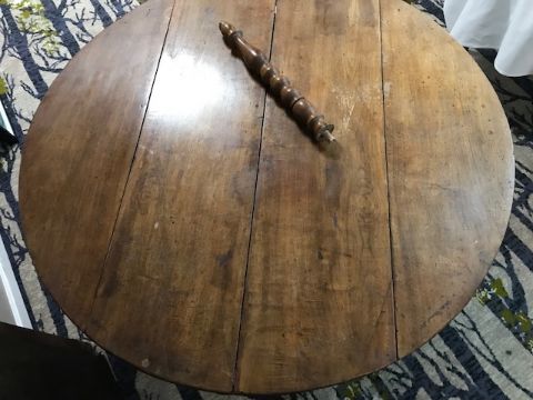 Condition: A country piece with character and marks, scratches and some old repairs commensurate with age and use. The three leaf insertions have warping, one leaf more than the other two, see images. The top has a later full length inset across its width, on the inner edge. There is a triangular repair to the top. The leaves look to have been refurbished fairly recently and each is made of two planks. They are in better condition than the top.