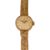 the circular dial with applied baton numerals, textured tapered bracelet with deployant buckle