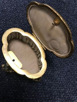 Condition: No damage or loss to enamel, interior silk slightly marked. Lock opens and closes but is a little sticky to open.