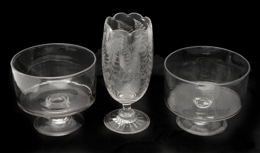Condition: Wedgwood soup plate has a hairline and chips to rim Sauce tureen has staining to interior or lid rim and small chip to finial . Stand and tureen in good condition. Plate has a hairline but no chips, Cowman dish in good condition. Planter has a feint hairline to one side. Ink pot with chips to rim Both glass bowls in good condition