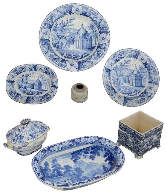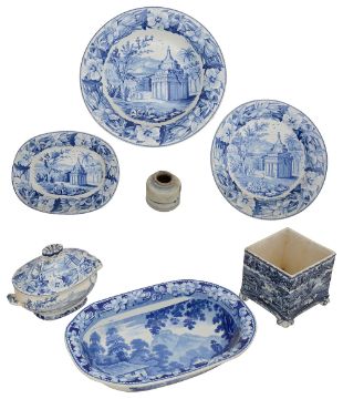 19th century blue and white transfer decorated china and glass