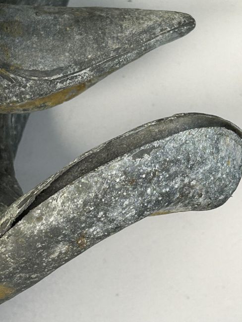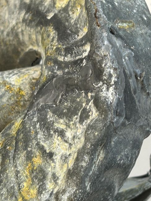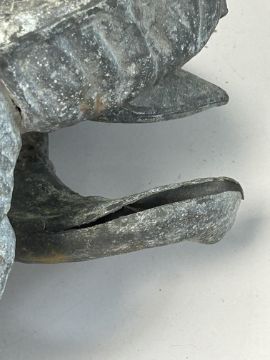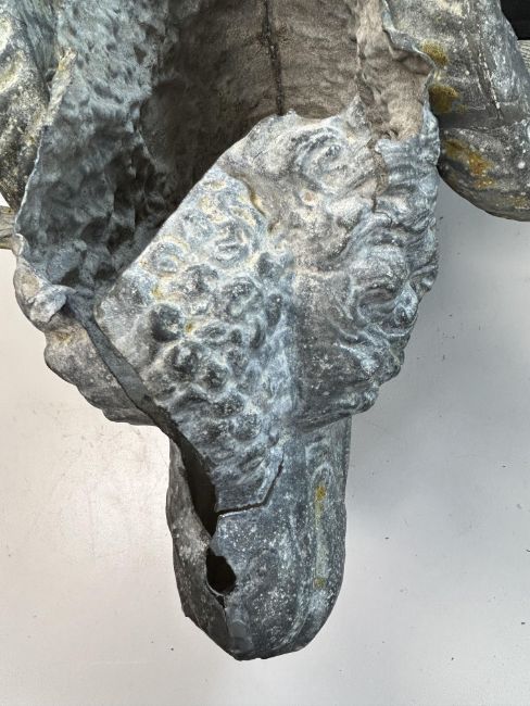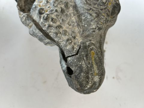 Condition: Old lead solder repairs to both horns in several places and centre seam on top of head and around muzzle. Cracks to neck. Left Horn seems opening up